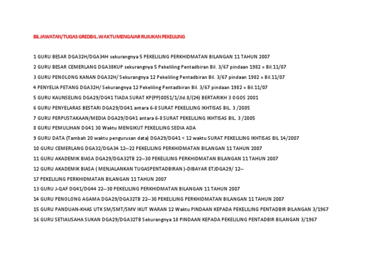 Related : Bilangan Waktu Mengajar Mengikut Pekeliling : Bilangan waktu mengajar mengikut pekeliling 1 guru besar bil.waktu mengajar dga32h/dga34h sekurangnya 5 3 /2005 8 guru pemulihan dg41 30 waktu mengikut pekeliling sedia ada 9 guru data (tambah 20 waktu pengurusan data)..