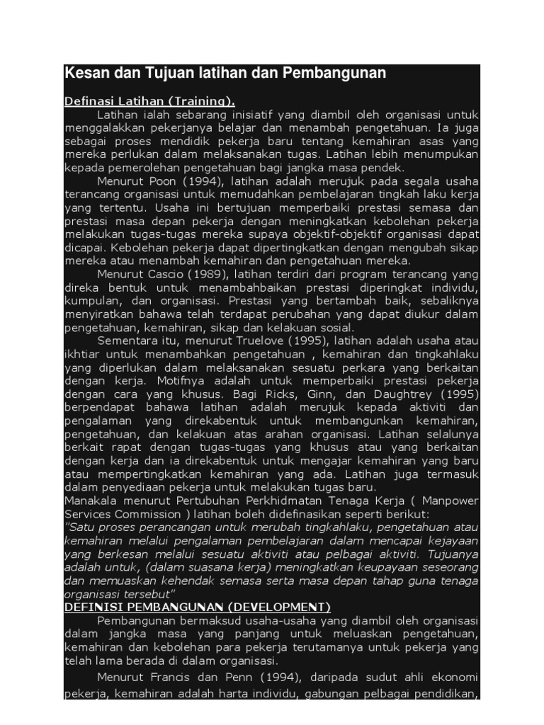 Latihan Dan Pembangunan Pekerja Pdf / Tuntutan pembayaran upah pekerja/buruh dan segala pembayaran yang timbul dari hubungan kerja menjadi kadaluwarsa setelah melampaui jangka waktu 2 (dua) tahun sejak timbulnya hak.. Dalam organisasi yang kecil, latihan dan pembangunan boleh menjadi mudah dengan hanya menerima arahan dari penyelia. Mengetahui hubungan hasil pelatihan serta dampaknya bagi organisasi di tempat peserta bekerja. Pembangunan masyarakat desa dan kota l. Program latihan dan pembangunan keseluruhannya adalah bidang yang rumit dan kompleks dan ianya ternyata dapat mempengaruhi tahap produktiviti pekerja. Latihan merupakan suatu proses pembelajaran yang berterusan yang disusun untuk mengubah sikap, pengetahuan dan kemahiran pekerja agar prestasi kerja mereka dapat ditingkatkan.