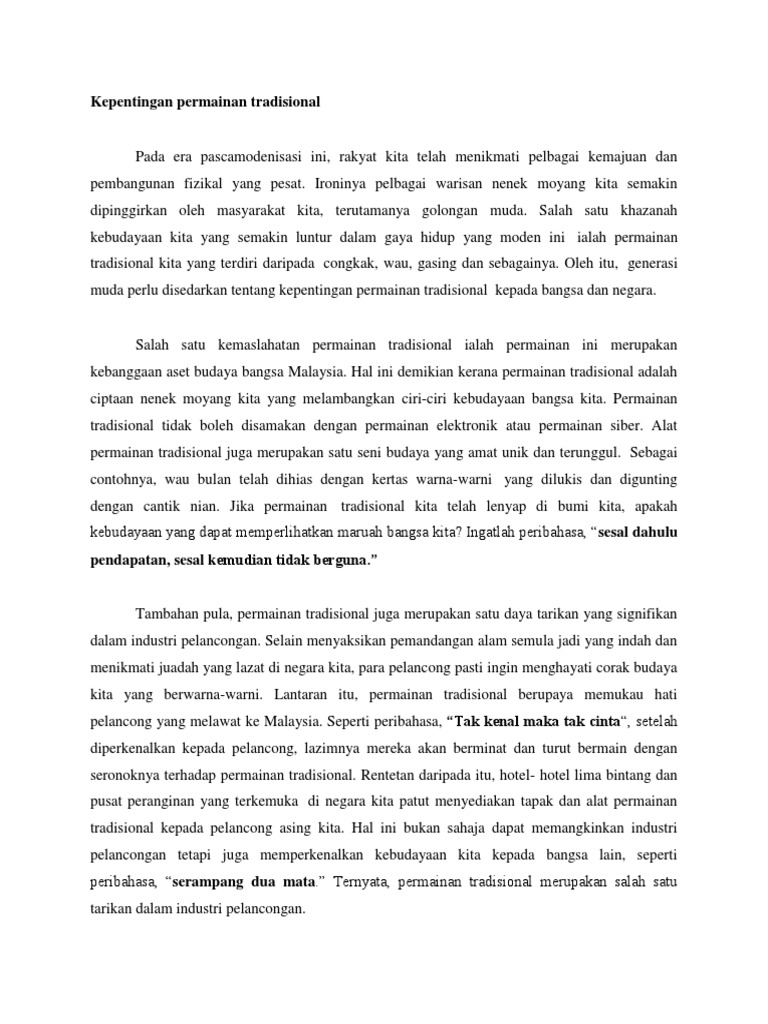 Kesimpulannya, terdapat banyak faedah permainan tradisional kepada remaja. Ramalam karangan spm 2 karangan. Melancarkan peredaran darah dan mengelakkan kebas pada anggota badan. Kehadiran teknologi dan komunikasi telah memberi pelbagai faedah dalam kehidupan remaja masa kini. Banyak faedah yang boleh diperolehi dari permainan tradisional seperti boleh mengeratkan silaturahim sesama manusia, menyihatkan badan kerana mengeluarkan peluh dan dapat memelihara warisan budaya zaman berzaman.